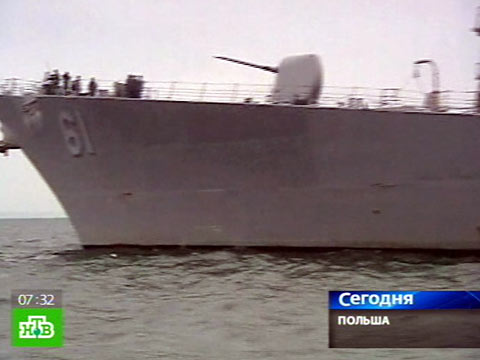 Боевой корабль ВМФ США встал на якорь в польском порту Гдыня и выпустил очередь из пулемета по портовым строениям.