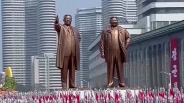На центральной площади Пхеньяна, носящей имя имени Ким Ир Сена, проходит парад в честь национального праздника 105-й годовщины со дня рождения Вечного президента КНДР.