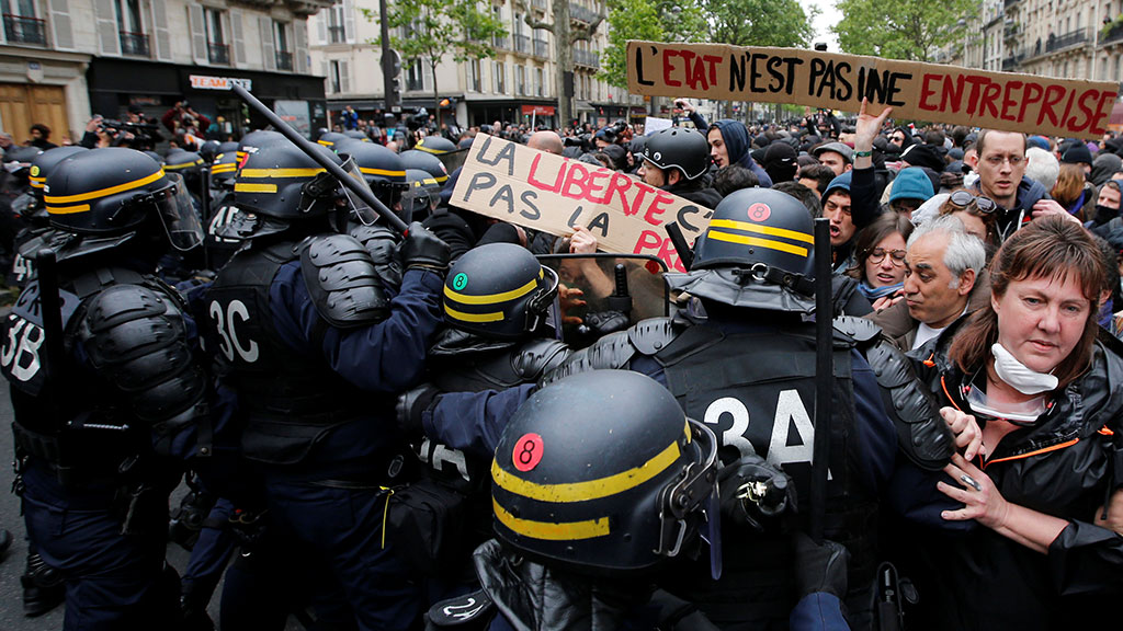 В Париже в несанкционированной манифестации участвовали более 300 радикально настроенных молодых людей, одетых в черное. Они выкрикивали лозунг «Ни Макрона, ни Ле Пен», провоцировали сотрудников полиции, бросая в их сторону бутылки и камни. Для усмирения демонстрантов был применен слезоточивый газ. Также полицейские отсекли от главной колонны предводителей шествия. Самых активных молодых людей полицейские зажали между двумя кордонами.