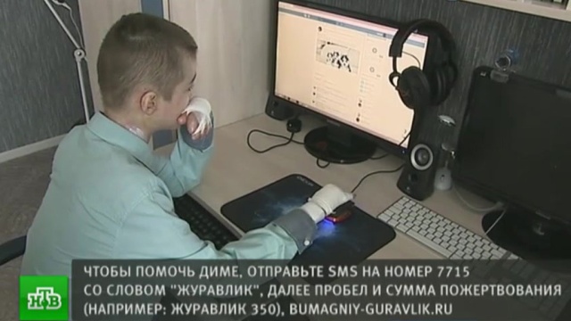 Несмотря на страшное заболевание, юноша смог окончить школу и сейчас готовится к ЕГЭ, чтобы потом поступать на программиста. Односельчане помогают, но силами Подгородней Покровки 2 миллиона рублей на операцию не собрать. Чтобы помочь Диме, отправьте СМС на номер 7715 со словом «журавлик», далее через пробел сумма пожертвования. Например: журавлик 350.