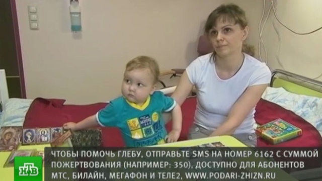 К сожалению, нужный медикамент или его аналоги не производятся в нашей стране, препарата нет ни в больнице, нет и в списках Минздрава на покупку. Препарат очень дорогой. Как передает корреспондент НТВ Алексей Ивлиев, 10 упаковок, необходимые Глебу, обойдутся в 717 тысяч рублей. Фонд «Подари жизнь» обращается к зрителям НТВ с просьбой помочь в сборе средств на лекарство для мальчика. Чтобы перечислить деньги, отправьте СМС на номер 6162 с суммой пожертвования. Например: 350.