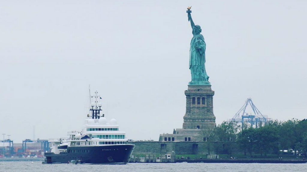 Американские СМИ негодуют: российский миллиардер Евгений Швидлер пришвартовал свою яхту Le Grand Blue у берегов Нью-Йорка так, что она закрыла вид на символ города статую Свободы.