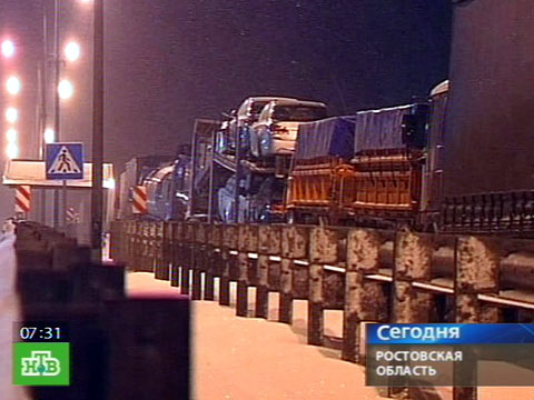На федеральной трассе «Дон» у города Шахты в Ростовской области сейчас идет борьба с многокилометровой автомобильной пробкой. Там стоят сотни машин, одних только пассажирских автобусов больше 20, передает НТВ.