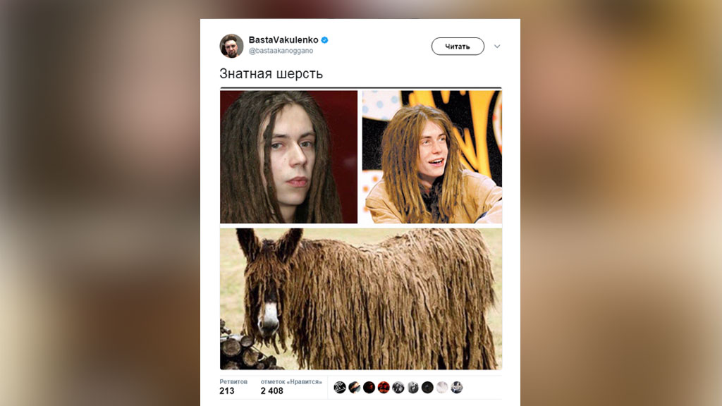 Кирилл Толмацкий, рэпер: «Я считаю, что это невоспитанно и недостойно публичного человека. А мне такой пиар не нужен, он меня не спросил. Меня это не обижает, но это недостойный пример для будущих поколений и для тех, кто слушает его музыку. Я готов воспринимать здоровую критику, но такое ребячество в 36 лет, на мой взгляд, непозволительно».