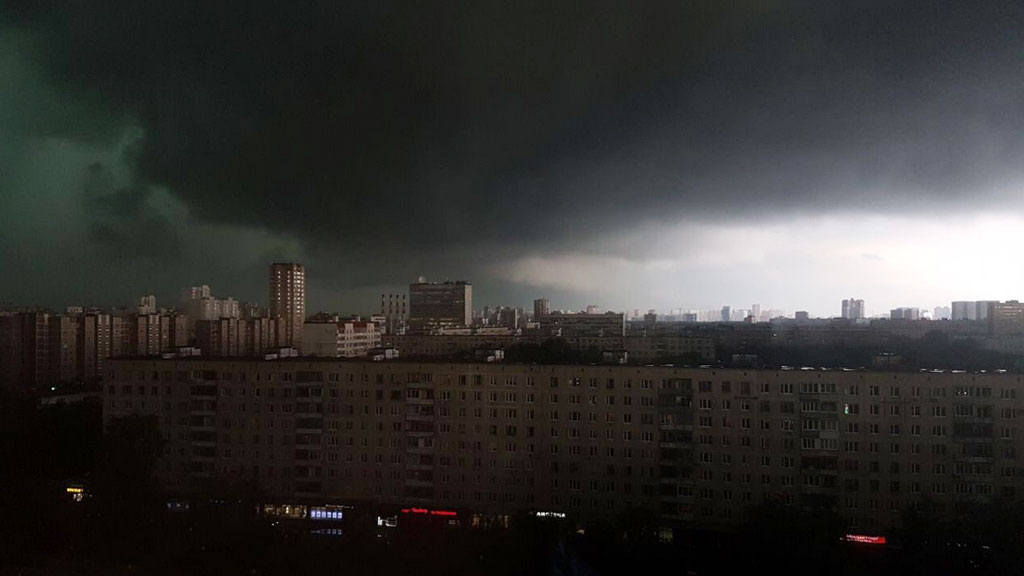 Тропические ливни и грозы с градом обрушились на Москву 30 июня. Штормовое предупреждение действует до позднего вечера.