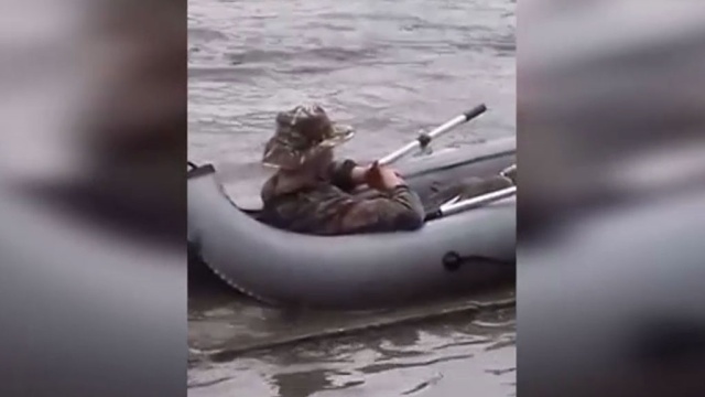Житель поселка Трехгорка Одинцовского района спустил надувную лодку на затопленную улицу и залез в нее с удочкой. Соответствующую видеозапись на YouTube выложили очевидцы.