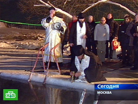 Самую же эффектную крещенскую традицию можно было наблюдать ночью — на реках и озерах России верующие троекратно окунались в прорубь. В Москве это сделали около 30 тысяч человек, многие из которых заявили корреспонденту НТВ Александру Калинину, что крепкие морозы укрепили их плоть и дух.
