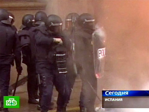 На севере Испании полиция вступила в бой с пожарными.