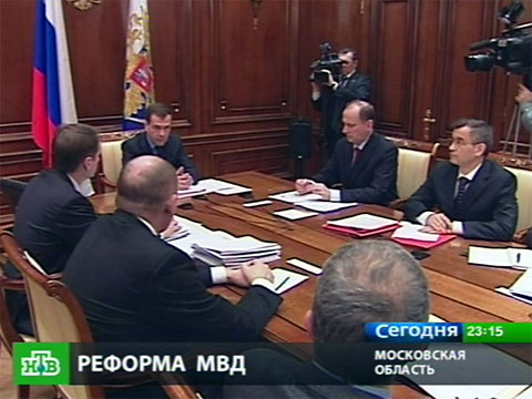 В конце прошлого года президент подписал указ о совершенствовании органов внутренних дел, где, в частности, предусмотрено федеральное финансирование общественной милиции. Президент поручил в срок подготовить дальнейшие предложения по этому вопросу и сегодня, еще до истечения этого срока, созвал совещание по реформе МВД.