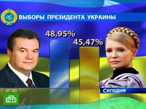 Центральная избирательная комиссия объявила Виктора Януковича будущим президентом Украины. Накануне результаты огласили на заседании ЦИКа. Согласно протоколу, за Виктора Януковича во втором туре отдали голоса 48,95% избирателей, за Юлию Тимошенко — 45,47%.