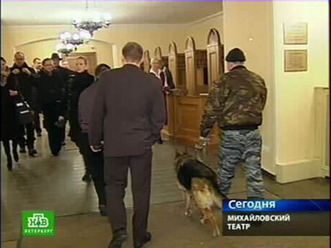 Неизвестный, назвавшись представителем партии националистского толка, сообщил на пост охраны театра, что Михайловский заминирован. Руководство театра совместно с силовыми структурами приняло решение об эвакуации зроителей и сотрудников.