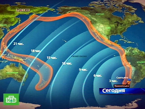 Сейчас предупреждения о возможном цунами объявлены в 53 государствах. Волны, движущиеся со скоростью 800 километров в час — а это скорость авиалайнера — могут подойти к берегам Южной и Центральной Америки, западного побережья США и Аляски, Полинезии, Японии, Филиппин, Индонезии, Австралии, Антарктиды.