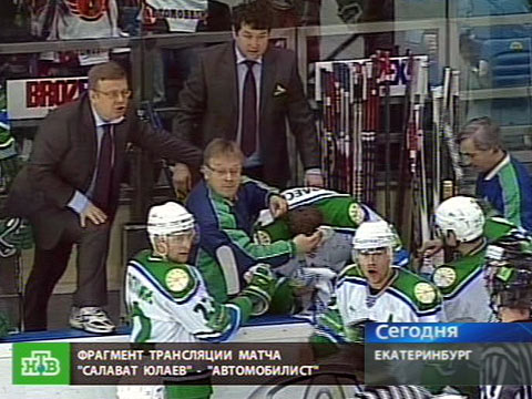 Сотрудник милиции: «Просьба работников милиции подойти к скамейке игроков команды „Салават Юлаев“ и оцепить команду».