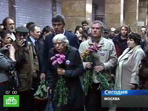 На станции «Парк культуры» напали на правозащитницу Людмилу Алексееву. Молодой человек ударил ее по голове в тот момент, когда она возлагала цветы к месту теракта, потрясшего столицу в понедельник.