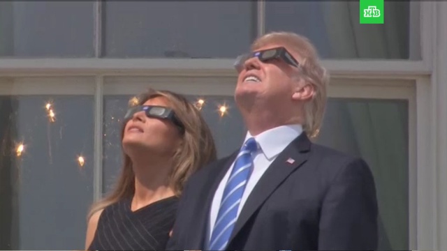 Дональд Трамп, его жена Меланья и их дети Иванка и Бэррон понаблюдали за затмением с балкона Трумана, расположенного на южной стороне Белого дома. К ним также присоединились министр юстиции Джефф Сешнс, министр торговли Уилбур Росс, торгпред США Роберт Лайтхайзер.