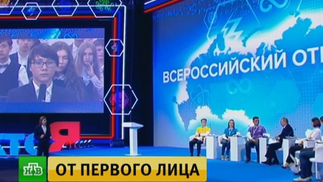 Владимир Путин, президент РФ: «Наше мероприятие приурочено к празднику, Дню знаний, началу учебного года, и поэтому я хочу и вас, всех присутствующих в этом зале, и всех, кто нас видит по различным каналам средств массовой информации, всех — студентов, школьников, преподавателей — поздравить с этим замечательным праздником. С Днем знаний!»