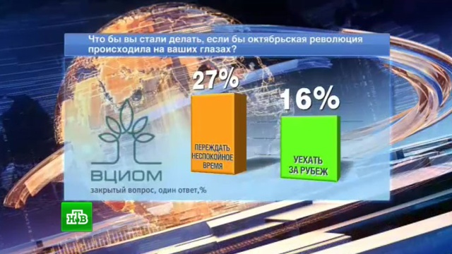 На вопрос, приняли бы они участие в Октябрьской революции, если бы они жили в то время, 27% опрошенных ответили, что предпочли бы переждать это время. В 2007 году так ответили 25% россиян.