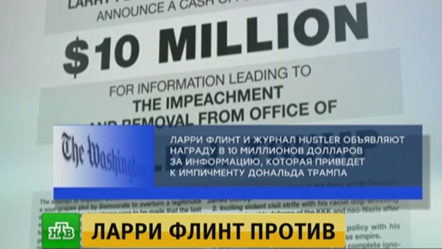 Основатель журнала для взрослых Hustler Ларри Флинт предлагает 10 миллионов долларов за информацию, которая может быть использована для подготовки импичмента президента США Дональда Трампа.
