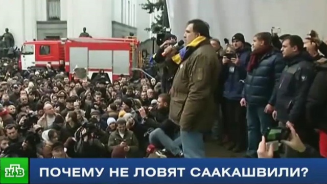 В Киеве арестован соратник Михаила Саакашвили Северион Дангадзе. Якобы, это именно он выпросил у бизнесмена Курченко 500 тысяч долларов на организацию митингов. Но нужен-то украинским властям сам Саакашвили. Накануне он убегал от сотрудников СБУ по крыше дома, потом его силой отбили у спецназа соратники. А в среду он не явился на допрос, несмотря на ультиматум украинской генпрокуратуры.