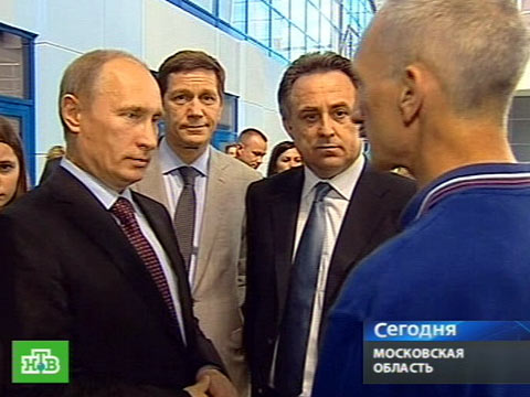 В следующее здание тренировочной базы Владимир Путин отправился в необычном кортеже из трех электромобилей. А на совещании по развитию спорта сегодня присутствовал и глава Счетной палаты Степашин, он подводил неспортивные итоги Ванкувера.