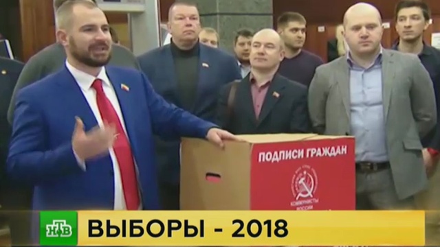 Другой кандидат Максим Сурайкин, представляющий «Коммунистов России», передал в ЦИК девять больших красных коробок. По его словам, подписи собирали во всех регионах.