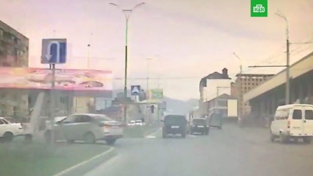 На кадрах видео видно, как сильный порыв ветра опрокидывает придорожный щит прямо на проезжавшую мимо иномарку. Автомобиль практически лишается крыши, причем в это время в салоне находятся водитель и пассажиры.