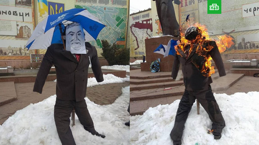 В нескольких городах Украины сегодня сторонники Михаила Саакашвили вышли на акции против Петра Порошенко. В Черновцах демонстранты сожгли чучело украинского лидера.