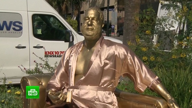 Позолоченная скульптура обвиненного в домогательствах продюсера Харви Вайнштейна появилась в Голливуде за три дня до вручения премий «Оскар». Ее установили местные уличные художники.