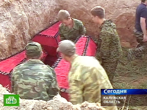 Даже в траурные мероприятия погода сегодня внесла свои коррективы. Чтобы на жаре никому не стало плохо, захоронение начали в восемь часов утра, пока солнце еще не было слишком высоко. В братскую могилу близ села Ивановское Калужской области опускают два десятка гробов, но в них останки почти тысячи красноармейцев, погибших на полях сражений в Великую Отечественную.