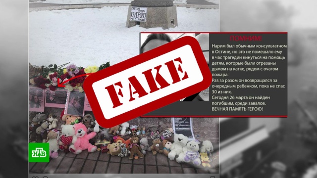 Героем, пусть и фейковым, в соцсетях сделали другого человека. Появилась информация, что консультант магазина одежды Нариман Намазов якобы спас 30 человек, но сам погиб в огне. На самом деле Нариман был в это время в Москве, на расстоянии 3,5 тысячи километров от Кемерова. Узнав о собственной гибели, он поставил на страничке статус «пока живой».