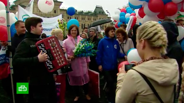Как сообщает корреспондент НТВ Евгений Голованов, в шествии участвуют не только москвичи и жители Подмосковья, но и жители других российских городов. Это не только люди старшего поколения, которые помнят еще советские демонстрации, но и молодежь, студенты, для которых это действо у стен Кремля сродни масштабному флешмобу.