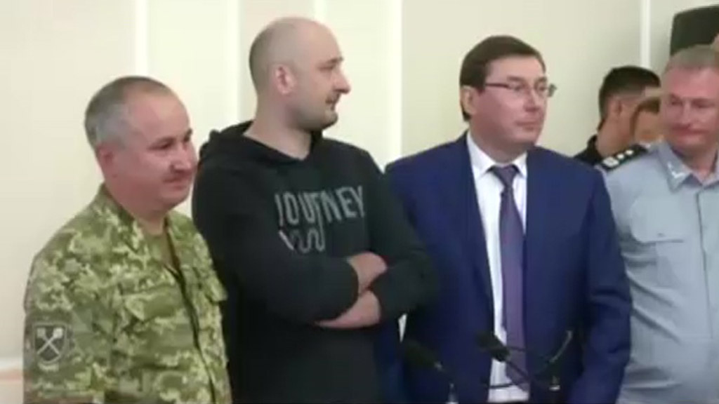 Российский журналист Аркадий Бабченко, об убийстве которого объявили накануне на Украине, сегодня предстал на брифинге СБУ, он извинился перед коллегами и женой, заявив, что месяц назад ему сообщили о поступившем на него «заказе» и предложили поучаствовать в спецоперации. По его словам, она готовилась два месяца.