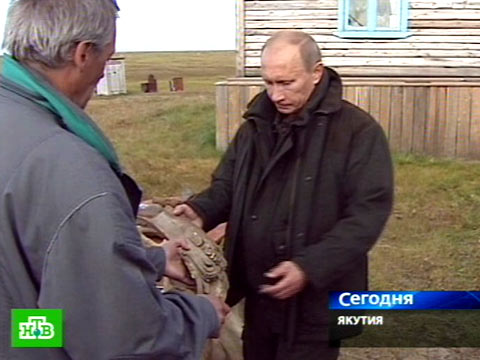Владимиру Путину показали палеонтологические находки экспедиции. Каждое лето ученые выкапывают большое количество костей мамонта. Аномально жаркое лето в Центральной полосе России невольно наводит на мысли о глобальном потеплении.