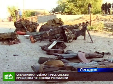 Есть информация, что боевики снимали происходящее на видео. Налетчикам удалось скрыться, передает НТВ. Сейчас в окрестностях Центороя силовики прочесывают местность.