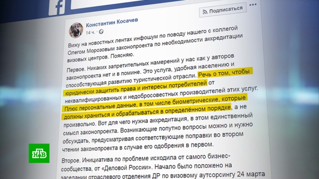 Один из авторов законопроекта, сенатор Константин Косачёв, написал в Facebook, что запретительных намерений у документа нет, что он защищает права и интересы потребителей и что персональные данные должны правильно храниться.