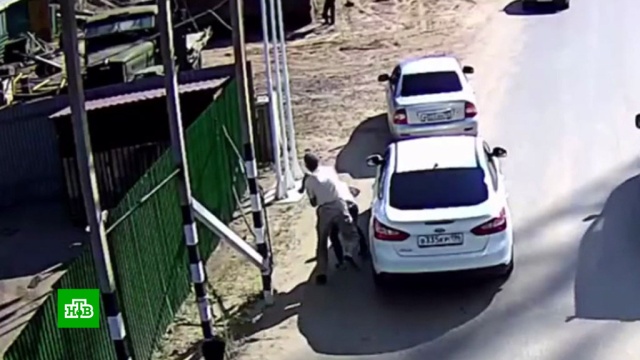 Полицейская Priora припарковалась, из нее вышел один из стражей порядка, а под колеса второй машине
