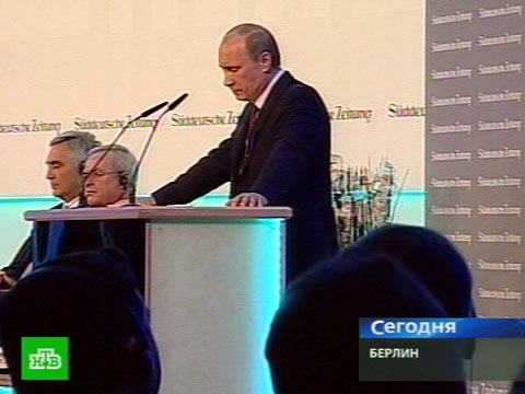 В Берлине Владимир Путин обсуждает с немецкими бизнесменами стратегию создания единого экономического сообщества — от Лиссабона до Владивостока. Встреча проходит в рамках форума, организованного одной из крупнейших газет Германии «Зюддойче Цайтунг» (Süddeutsche Zeitung).