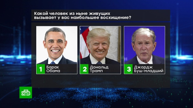 Второе место, несмотря на шквал критики и, мягко говоря скандальную репутацию, занял действующий президент США Дональд Трамп. Замкнул тройку лидеров другой бывший американский лидер — Джордж Буш — младший. Эти политики опередили по популярности папу римского, Билла Гейтса и Илона Маска.