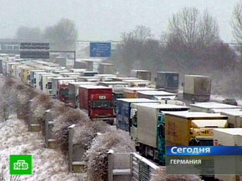 В такую погоду немецкие автобаны — это буквально гиблое место. Снегопад снижает скорость на самых быстрых дорогах Германии до минимума, то есть до нуля. Так называемые снежные пробки — известная европейская беда, причем измеряется она обычно десятками километров.