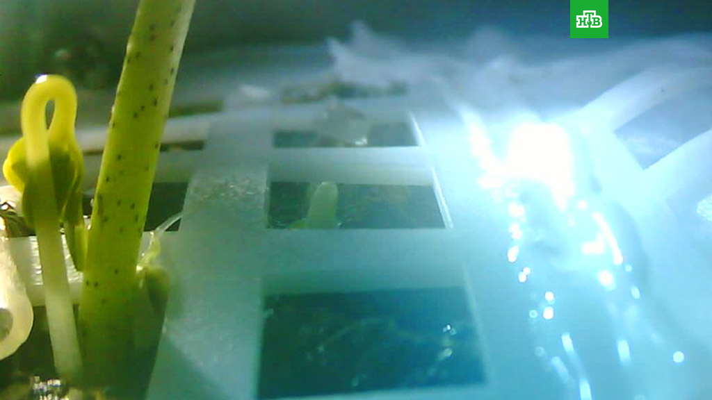 Росток хлопчатника, появившийся из семени в специальном герметичном контейнере на борту зонда