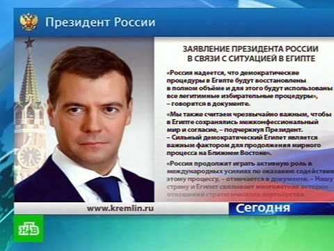 Дмитрий Медведев выразил надежду, что египетский народ сумеет скорейшим образом восстановить демократические процессы в стране. Заявление российского президента распространила