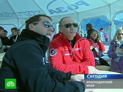Дмитрий Медведев и Владимир Путин прибыли в столицу зимней Олимпиады 2014 года. Там проходит Кубок Европы по горным лыжам.