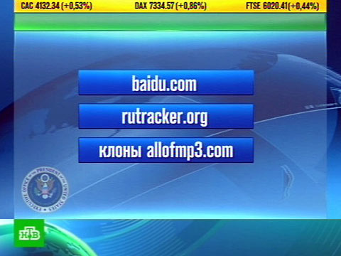 Среди российских сайтов отмечен Rutracker.org — наследник закрытого файлообменника Torrents.ru. На место закрытого российского Allofmp3.com пришли его многочисленные клоны — там можно нелегально скачать музыку. Упомянута в докладе и социальная сеть «Вконтакте» — она, по утверждению американского торгпреда, дает доступ к материалам, размещенным в сети без разрешения правообладателя.