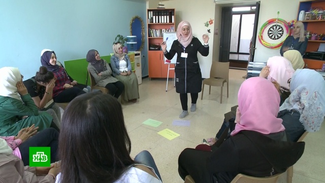Хала Захрул, посетительница центра: «Когда боевики захватили наш район, они заставили мужчин воевать на их стороне — против Сирийской армии. У мирных жителей отнимали деньги. На моих глазах убивали людей. Я до сих пор не могу избавиться от этих воспоминаний. Поэтому прихожу сюда, в этот центр, где мне помогают забыть те ужасные дни».