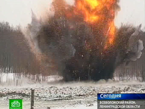 Ученые вычислили месторасположение эпицентра толчков — 40 километров от Пулкова — Всеволожский район Ленобласти. Как раз там, где военные в последнее время почти каждый день уничтожают сотни килограммов боеприпасов. Сегодня журналистам сначала показали сами снаряды. А потом приступили к самой эффектной части утилизации устаревшего боезапаса.