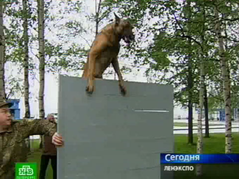 Аудитория так и не дождалась ни десантирования СОБРа с вертолета, ни рукопашного боя. Зато служебные собаки очень старались произвести впечатление на зрителей. И им это удалось. Одно из самых сложных заданий — прыжок через двухметровое препятствие, передает НТВ.