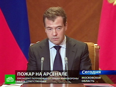Дмитрий Медведев поручил министру обороны провести расследование пожара в Удмуртии. На совещании членов Совета безопасности президент потребовал найти ответственных за этот инцидент.