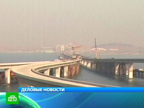 Надводный мост связывает китайский порт Циндао с его промышленным пригородом Хуандао.