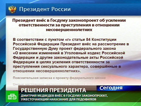 Президент России дал ход рассмотрению закона против педофилов.