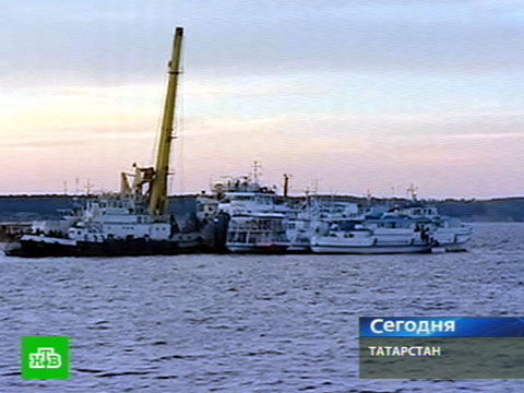 Несколько часов назад к месту крушения теплохода «Булгария» пришел первый из двух плавкранов «Могучий» из Волгограда. Второй, как сообщается, на подходе, его ожидают в первой половине дня.